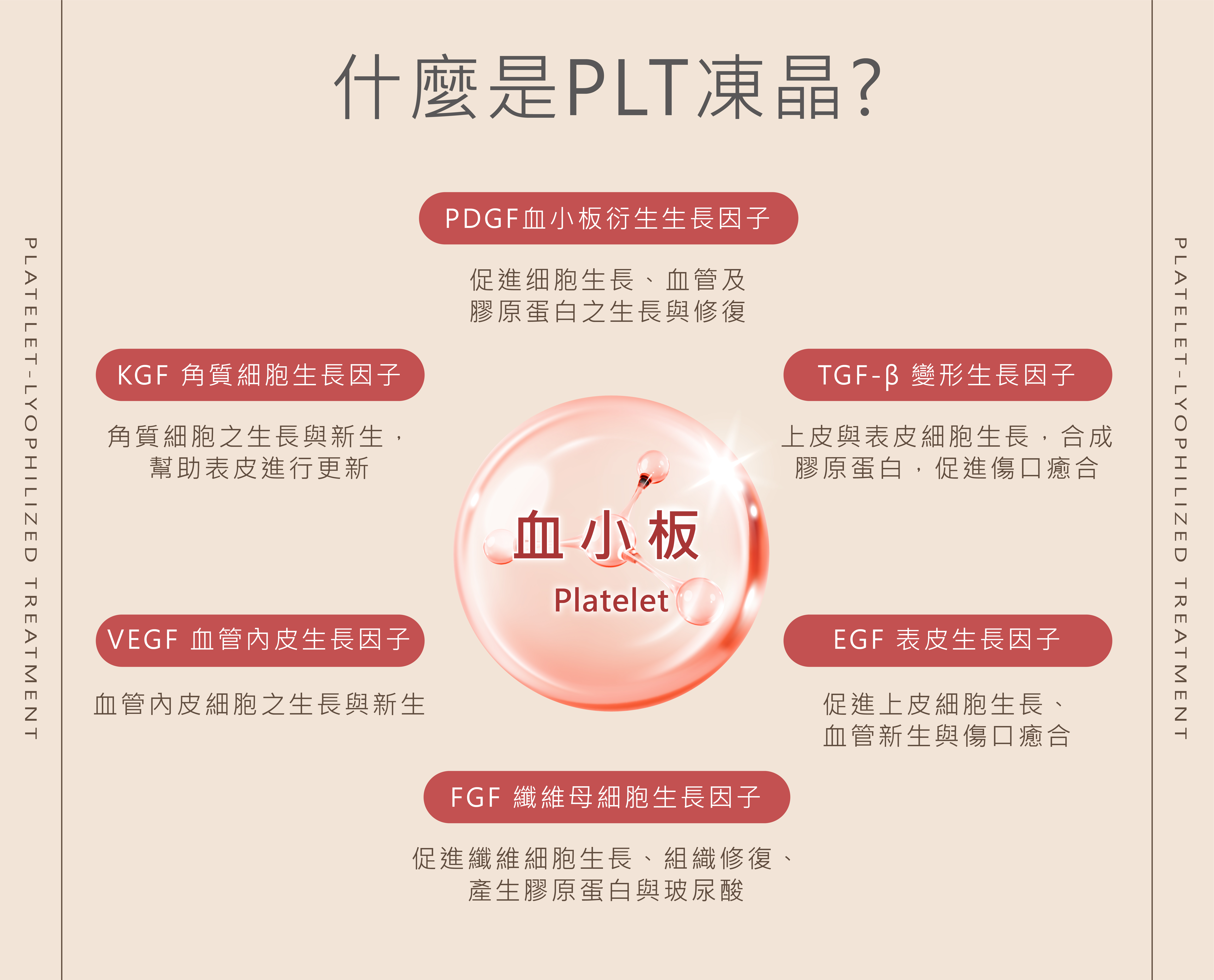 PLT凍晶是一種利用自體血液中血小板修復功能的醫美技術。它透過專利離心技術抽取血液,再「裂解」血小板,使其釋放全部生長因子。然後將含有生長因子的液體進行冷凍乾燥或超低溫冷凍保存,進而形成血小板凍晶。在使用時可解凍凍晶,促進膠原蛋白新生,幫助改善皮膚鬆弛等問題。