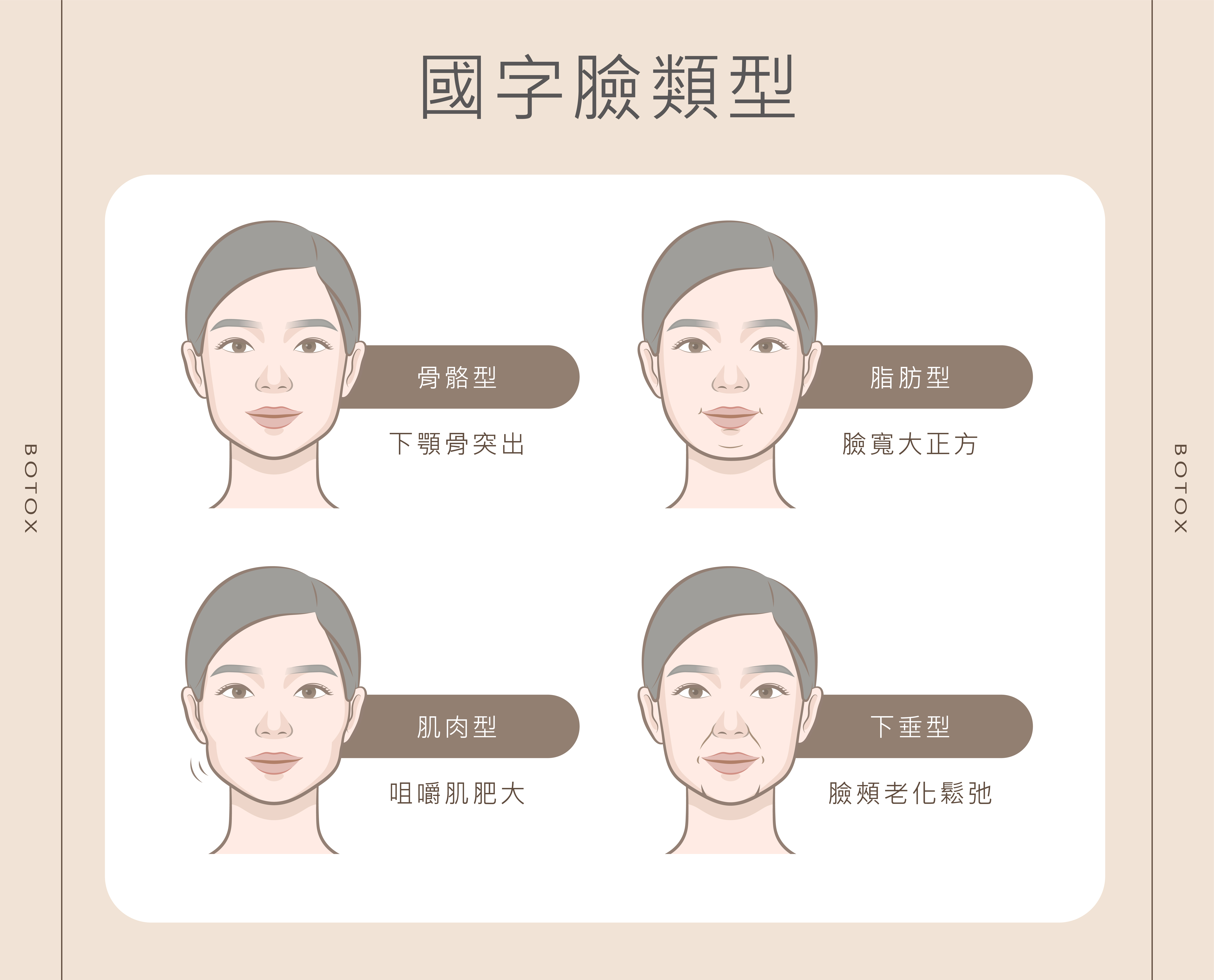 隨著人體自然老化和膠原蛋白流失,筋膜層發生鬆動,會由於年紀大變國字臉。原本位於蘋果肌或臉頰中段的脂肪,滑落堆積到了下顎線附近,堆積組織突起,視覺上讓臉變寬變方,形成國字臉。