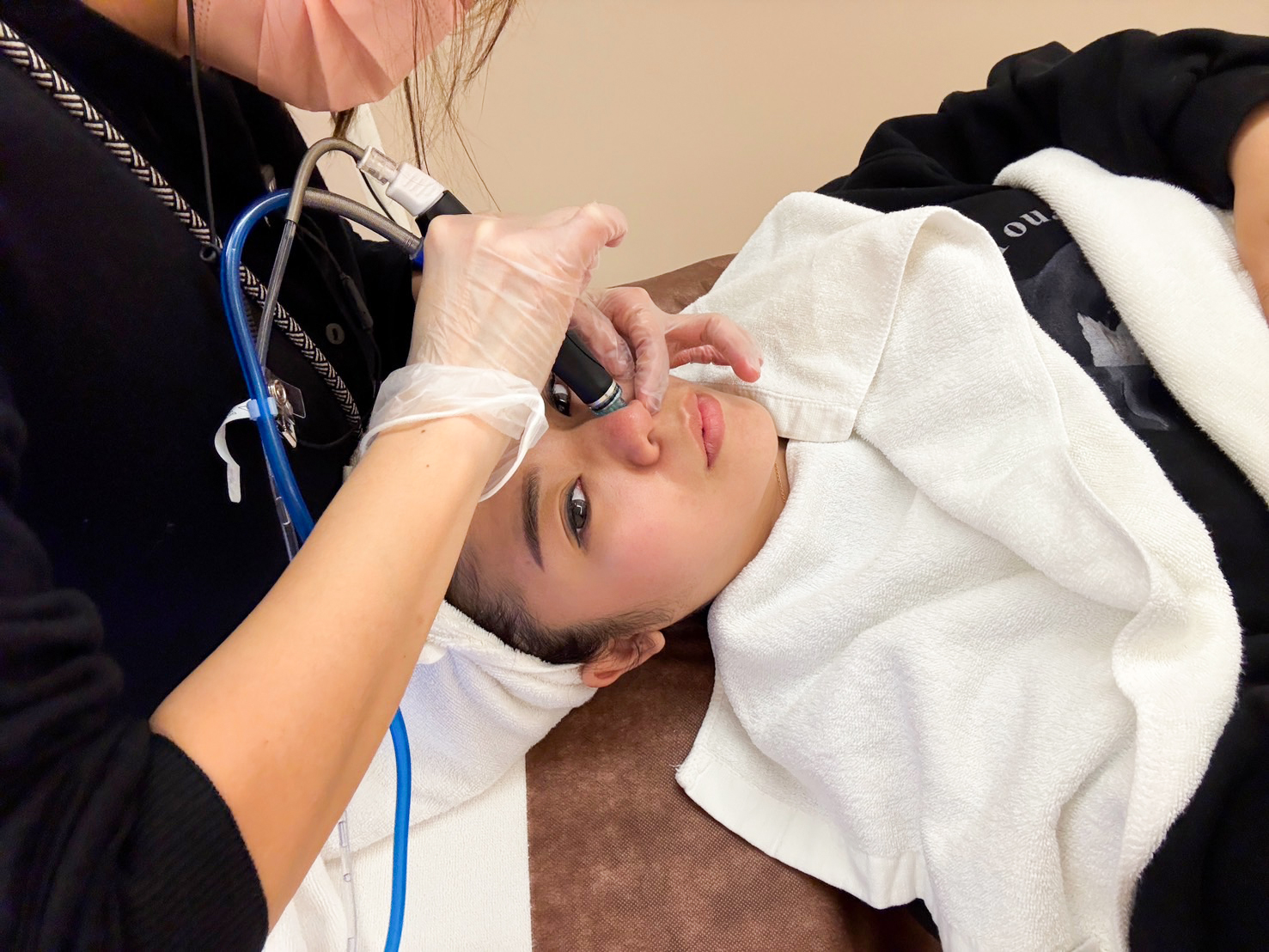 這次用的是最新機型的海菲秀,清潔力更強、吸力更穩定,整個過程很舒服,先用特殊溶液軟化粉刺,再透過渦旋水流深層帶走髒污與老廢角質,最後補充保濕精華。做完之後,皮膚透亮、毛孔細緻,摸起來變得滑順,隔天上妝也更服貼。我老公本來粉刺明顯、毛孔粗大,但這次做過一個禮拜,他就有跟我說皮膚變得更平滑,粉刺也明顯變少了✌🏻