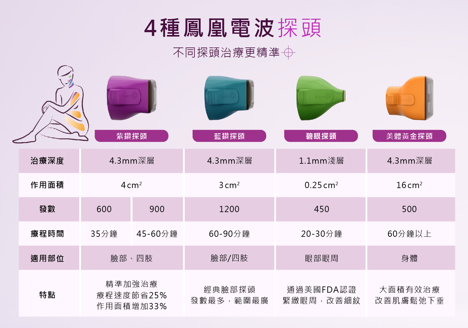 ● 4種探頭:適用全身肌膚訂製專屬療程