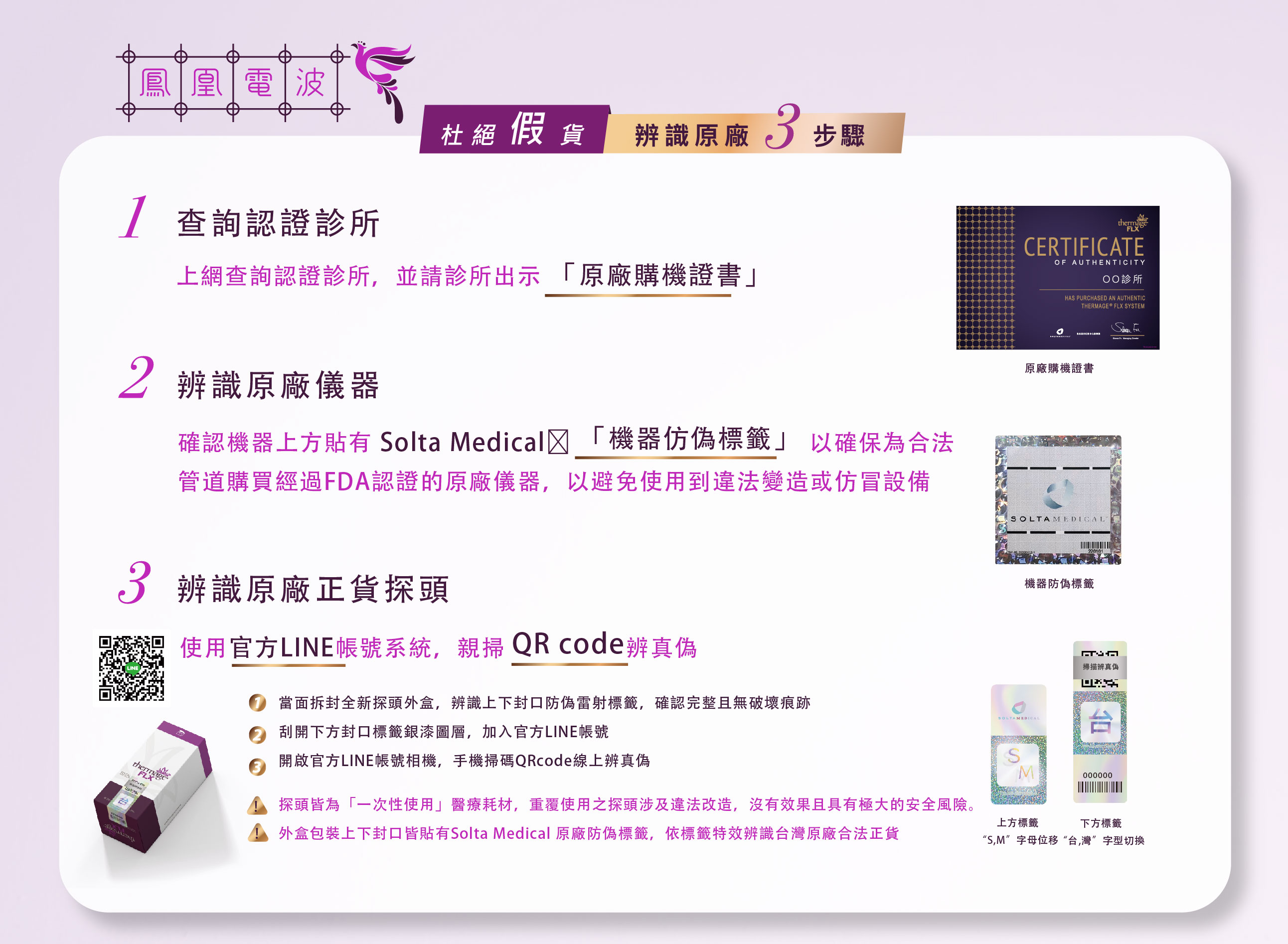 ● 治療區域有嚴重皮膚炎、蟹足體質、治療部位曾埋入人工填充物(如矽膠、黃金埋線等金屬)者不適合接受此療程。