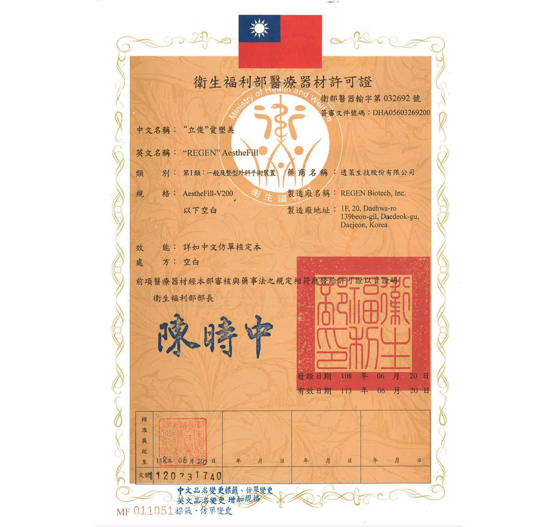 【衛部醫器輸字第號032692號】